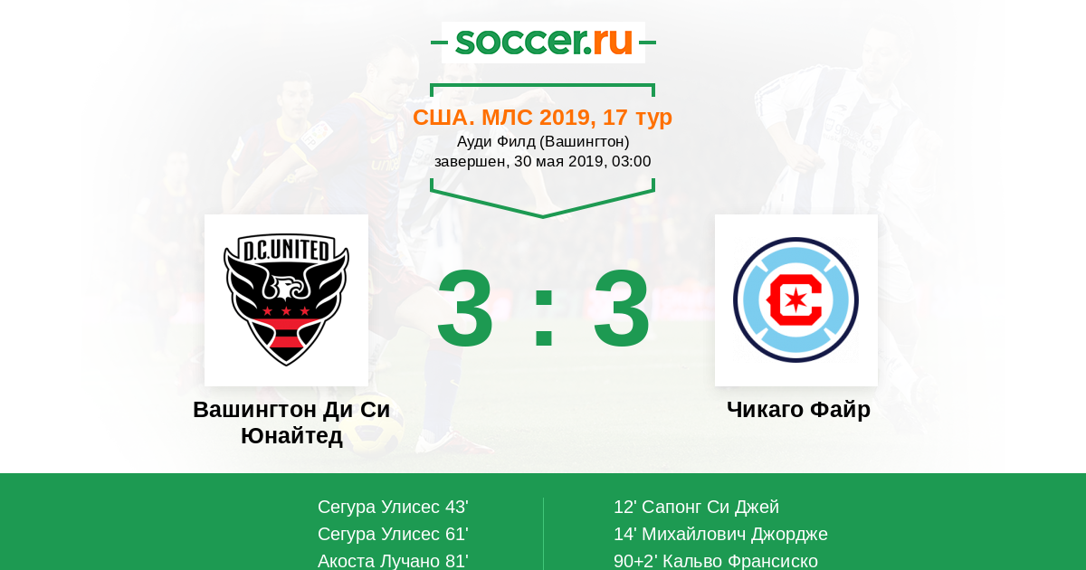 | Вашингтон Ди Си Юнайтед | Чикаго Файр | |