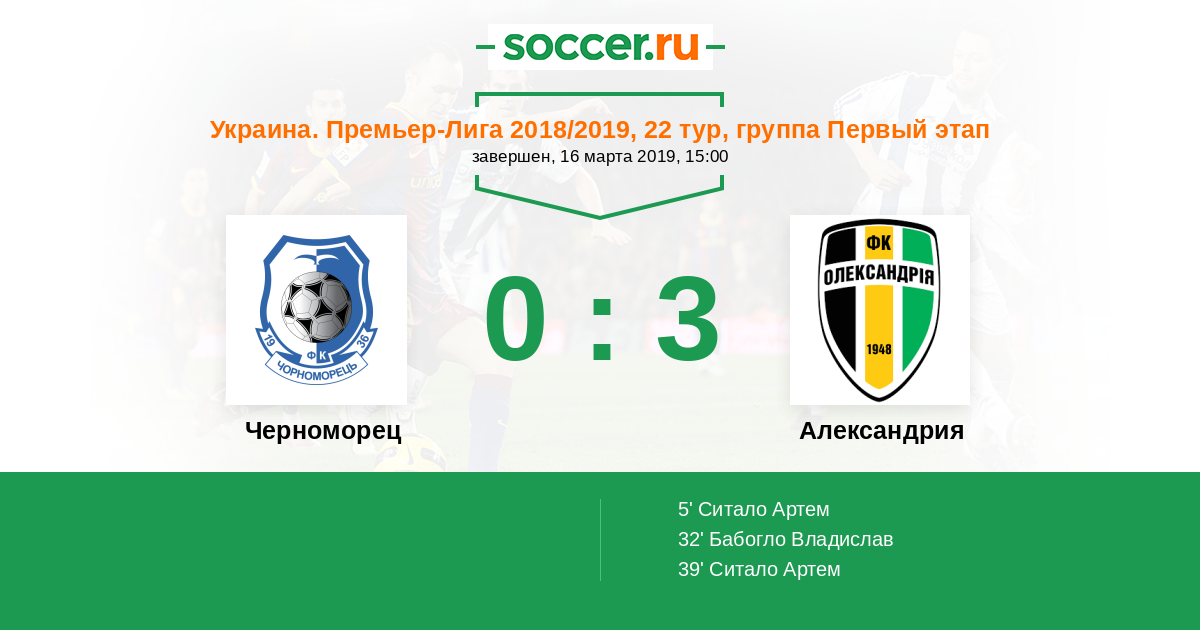 | Александрия | 34:38 | 18:21 | 16:17 |