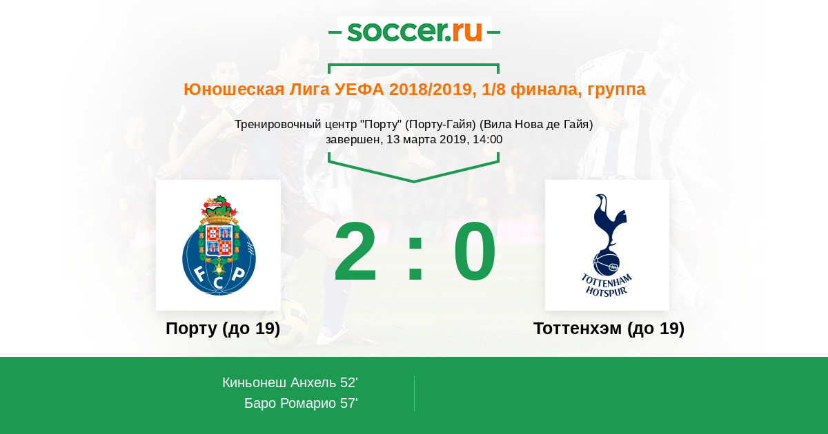 | Порту (до 19) | Тоттенхэм (до 19) | |