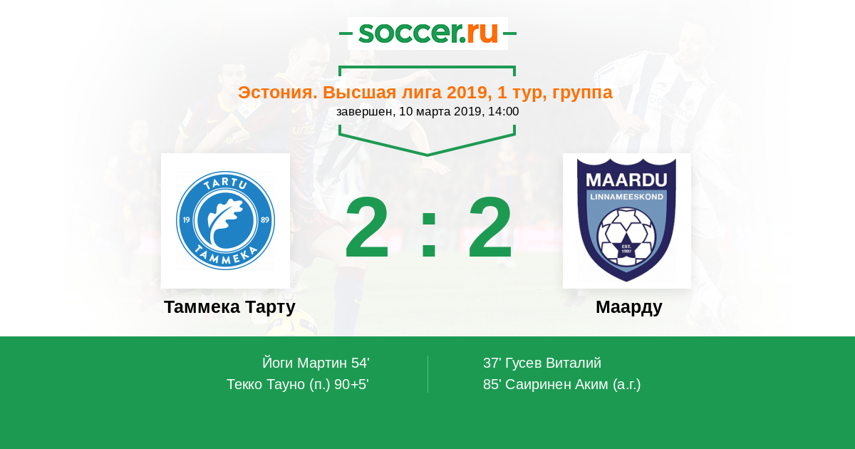 | Таммека Тарту | 4:2 | 2:0 | 2:2 |