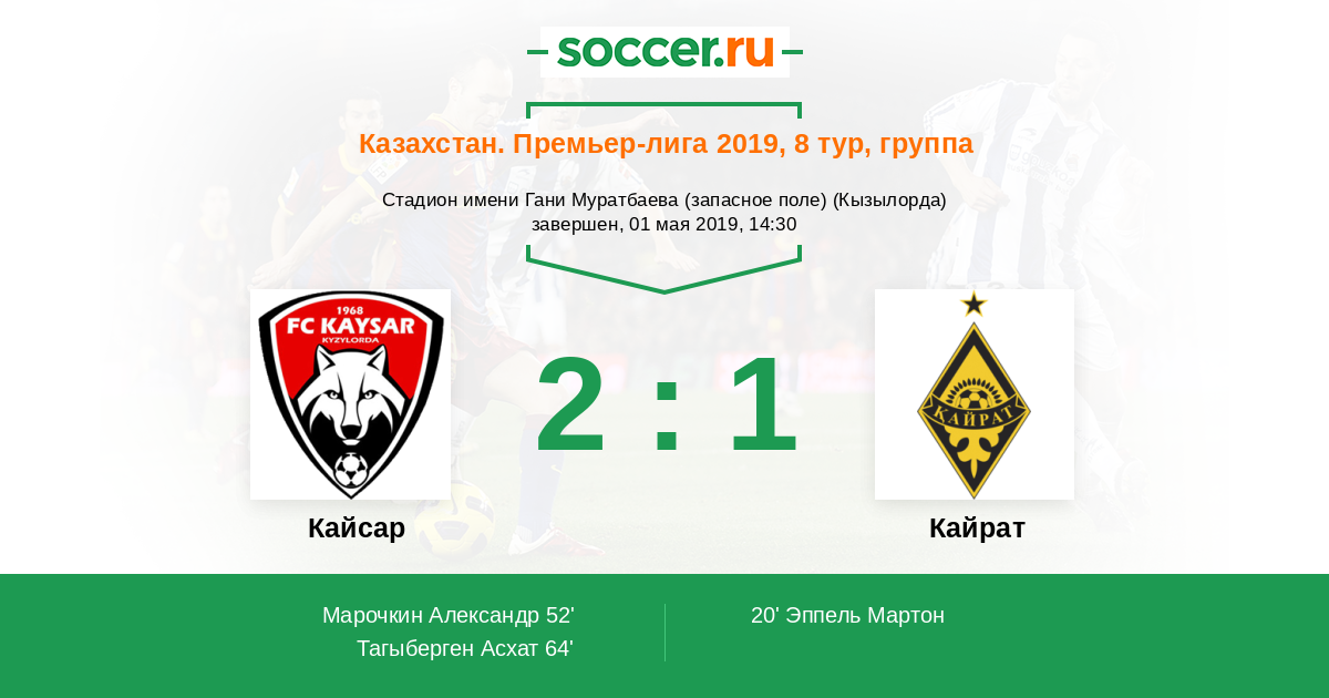| Кайсар | 36:63 | 19:22 | 17:41 |