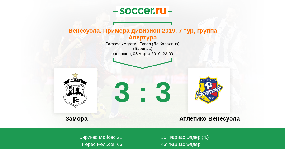 | Замора | Атлетико Венесуэла | |
