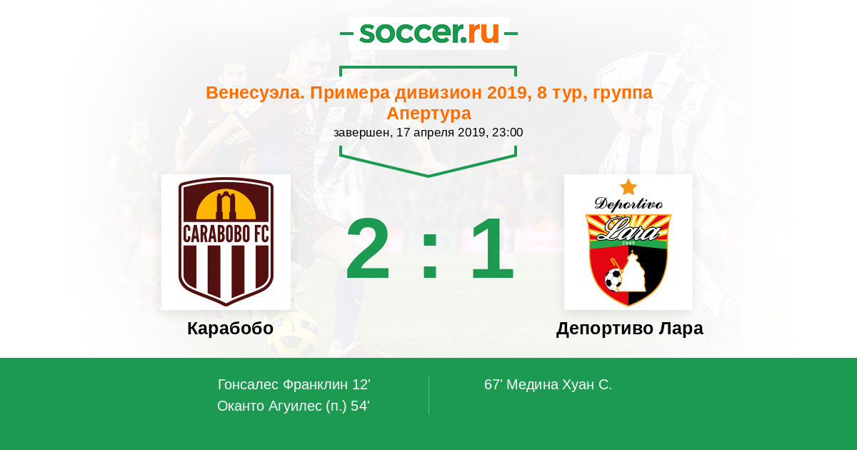 | Карабобо | 42:44 | 20:20 | 22:24 |