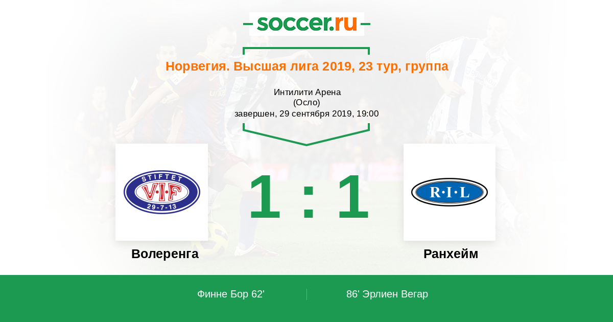 | Волеренга | 9:4 | 2:1 | 7:3 |