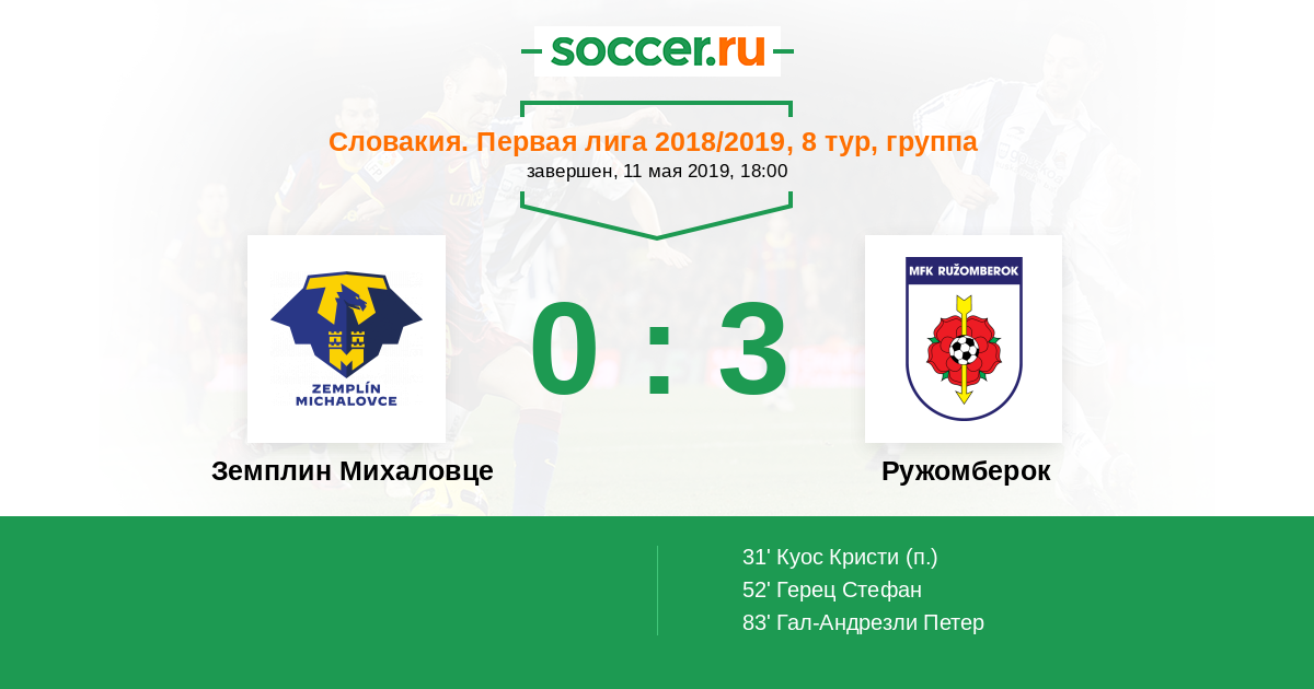 | Земплин Михаловце | 33:53 | 25:27 | 8:26 |
