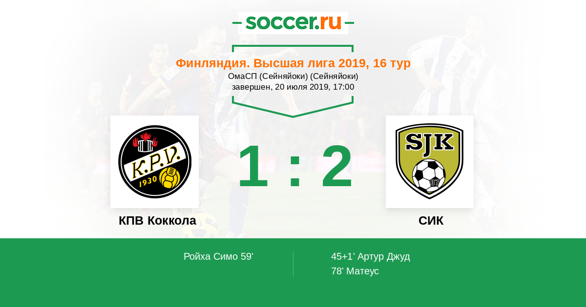 | КПВ Коккола | 0:1 | 0:0 | 0:1 |