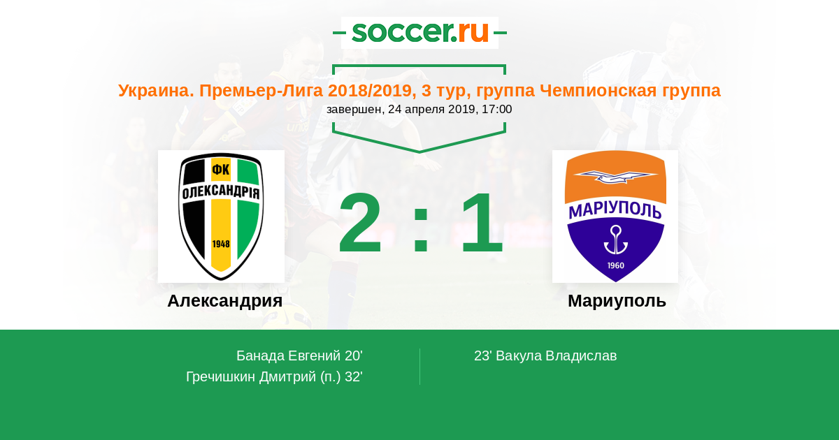 | Александрия | 19:20 | 14:9 | 5:11 |