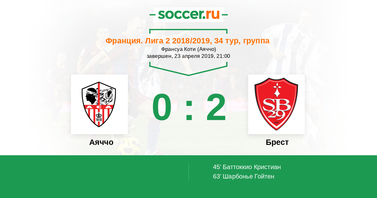 Аяччо 2:1 Брест