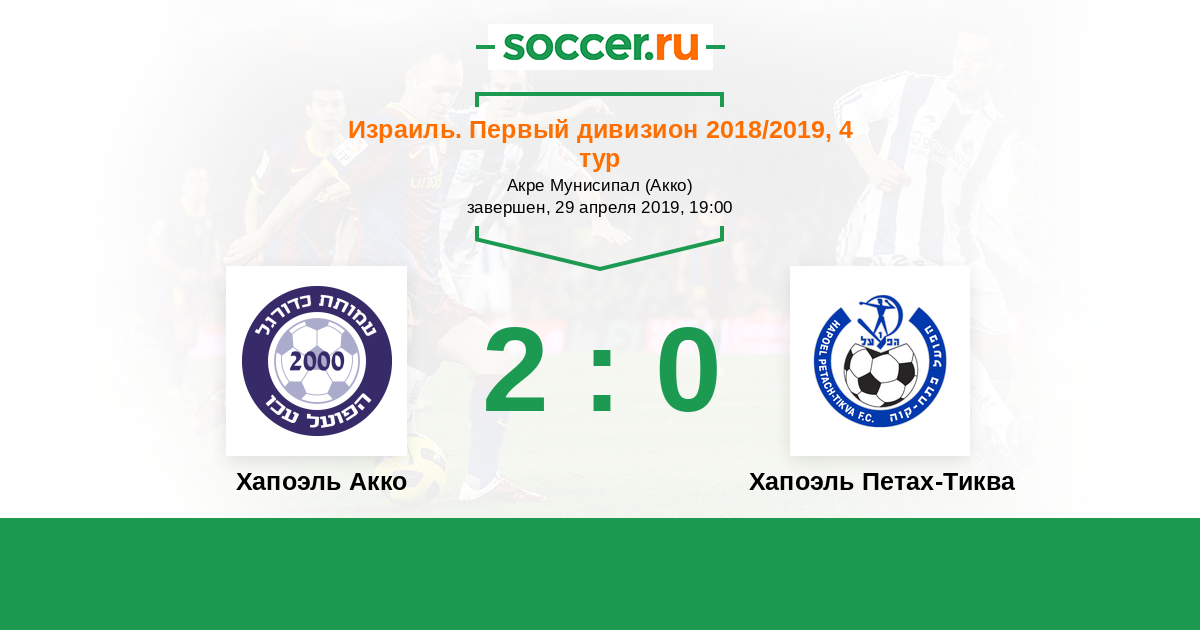 | Хапоэль Акко | Хапоэль Петах-Тиква | |
