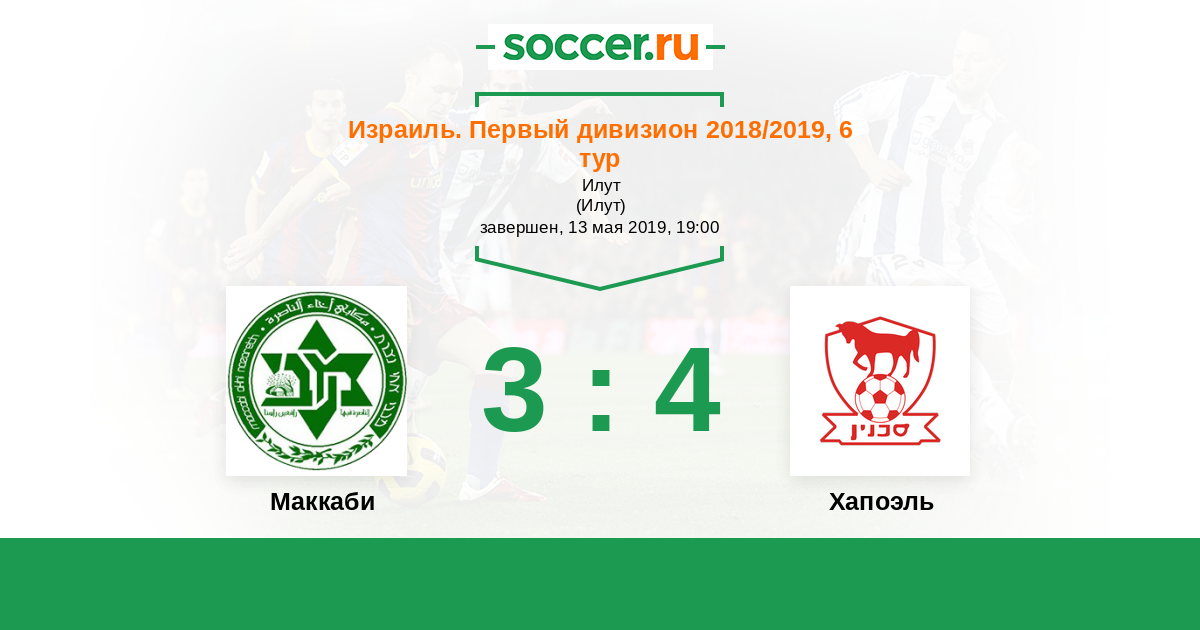 | Хапоэль | 51:54 | 21:26 | 30:28 |