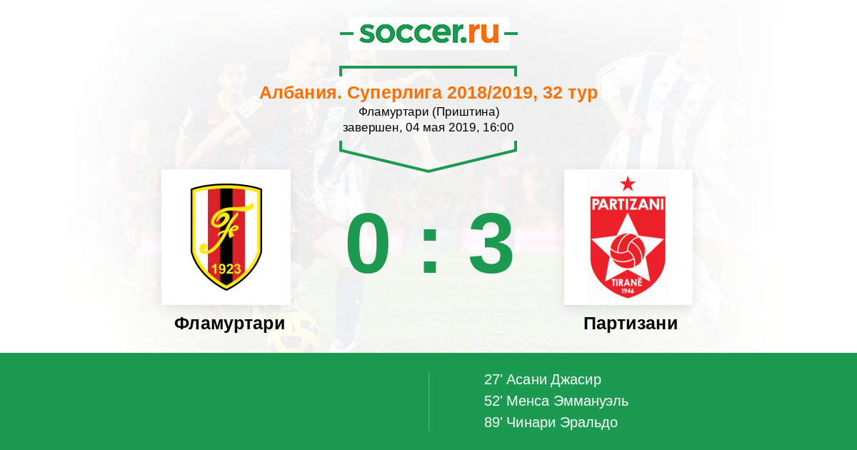 | Фламуртари | 34:60 | 19:20 | 15:40 |