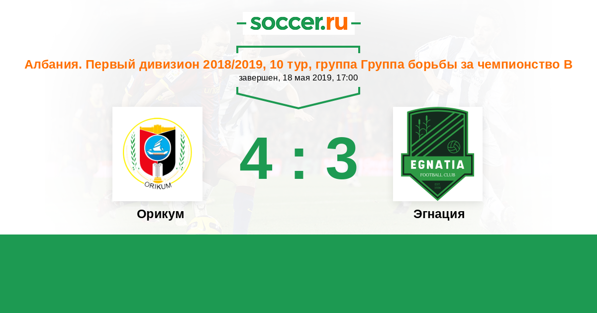 Албания. Первый дивизион 2018/2019, 10 тур, Группа борьбы за чемпионство B