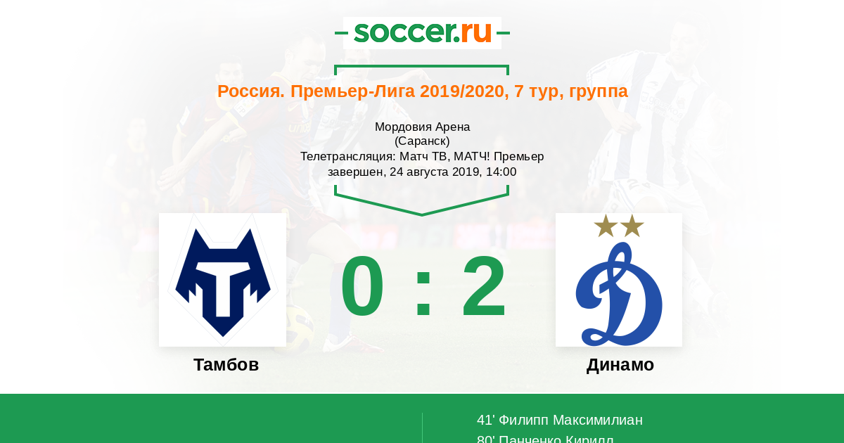 Саранск, Мордовия Арена, зрителей: 4816 Телетрансляция: Матч ТВ, МАТЧ! Премьер