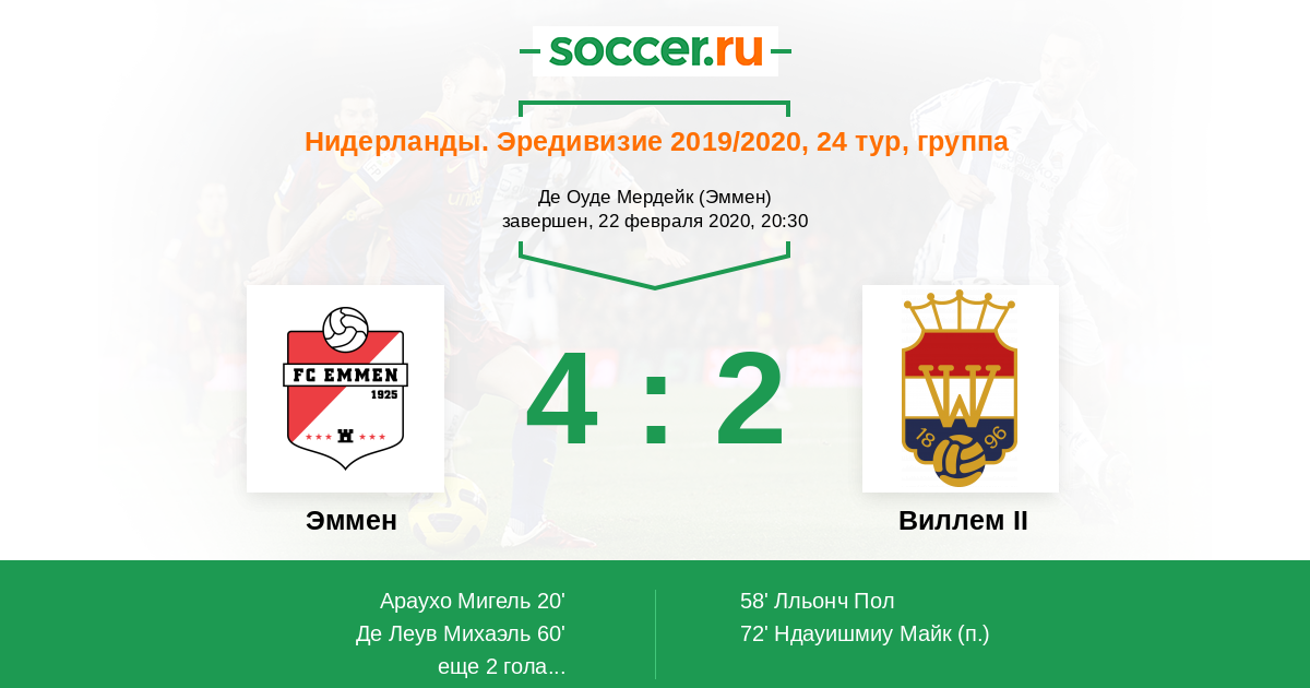 | Виллем II | 23:11 | 18:7 | 5:4 |
