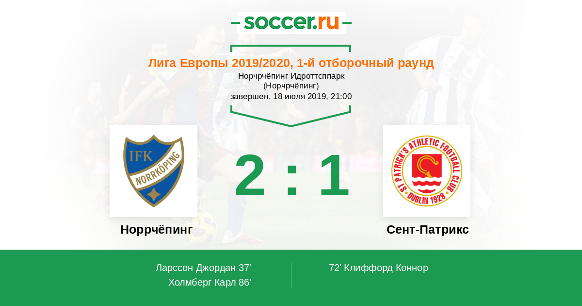 | Норрчёпинг | 2:0 | 0:0 | 2:0 |