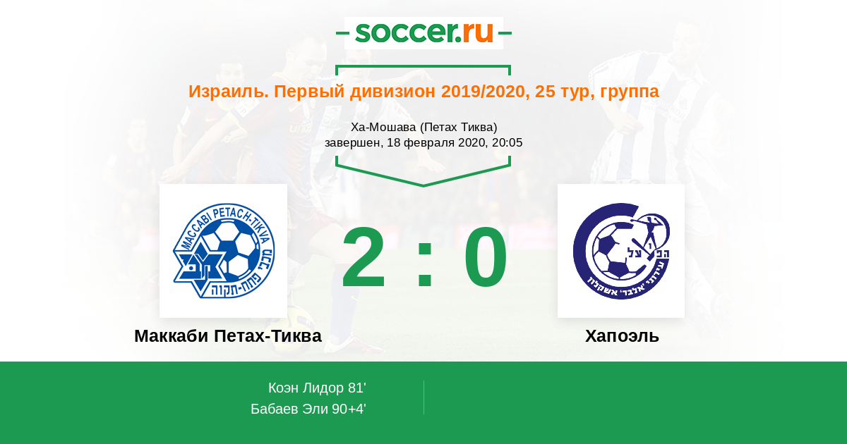 | Маккаби Петах-Тиква | 29:2 | 16:1 | 13:1 |