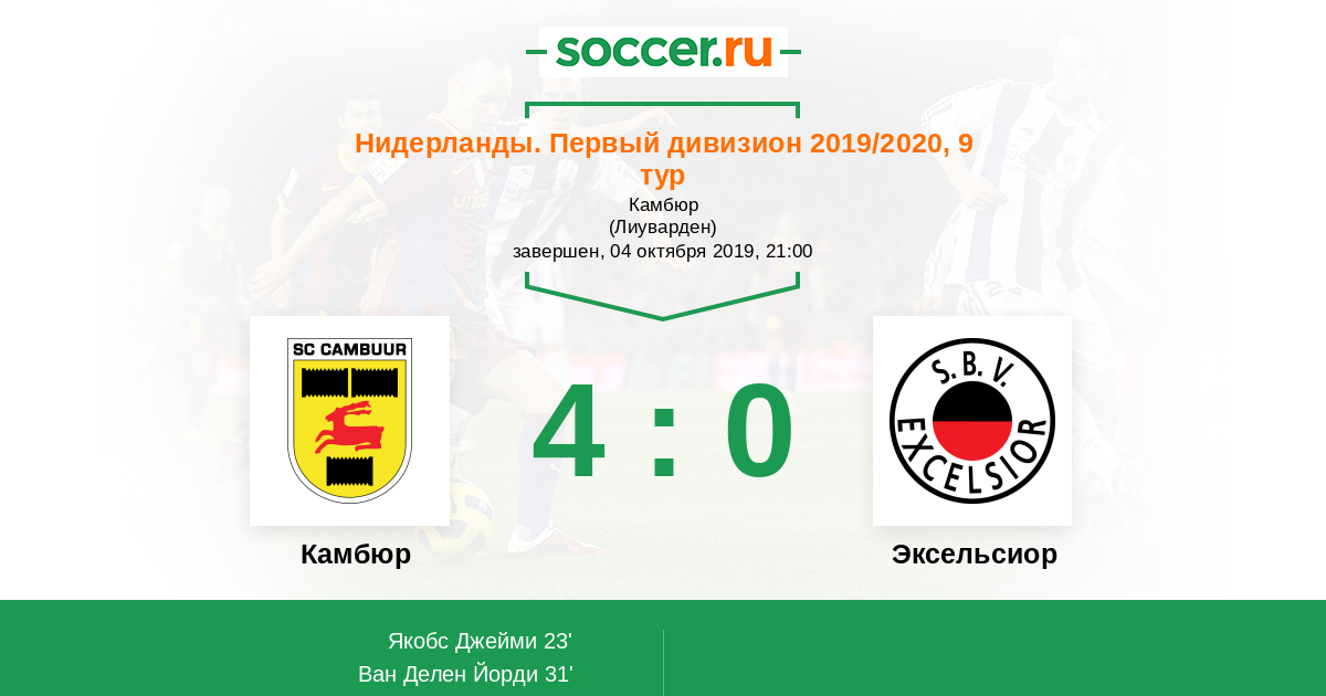 | Эксельсиор | 53:45 | 26:21 | 27:24 |