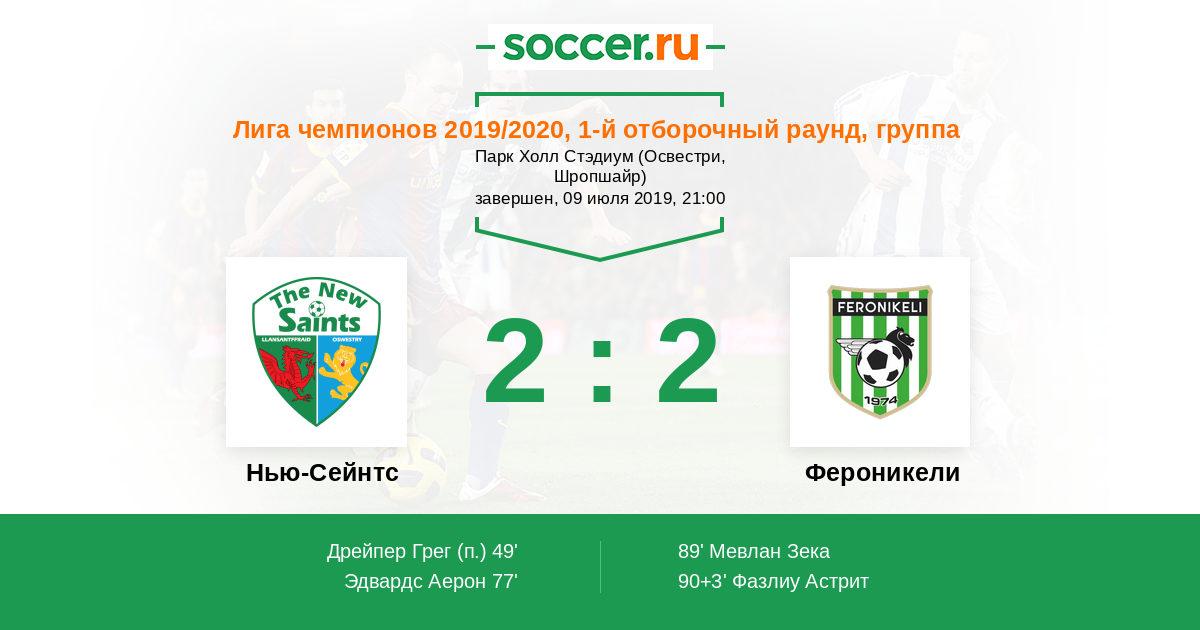 | Нью-Сейнтс | 1:0 | 0:0 | 1:0 |