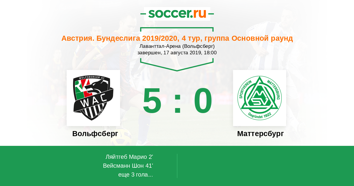 Последние 5 игр дома Вольфсберг