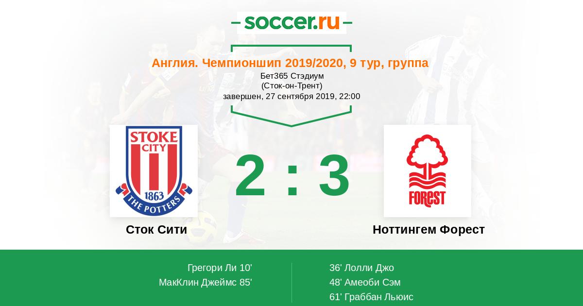 | Сток Сити | Ноттингем Форест | |