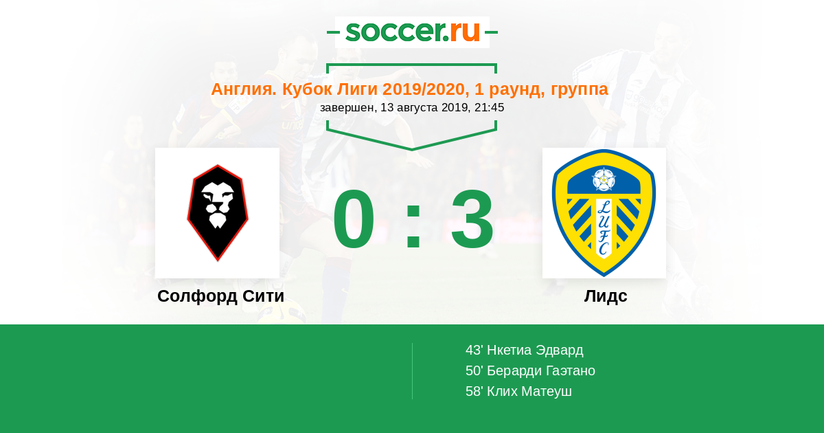| Солфорд Сити | Лидс | |