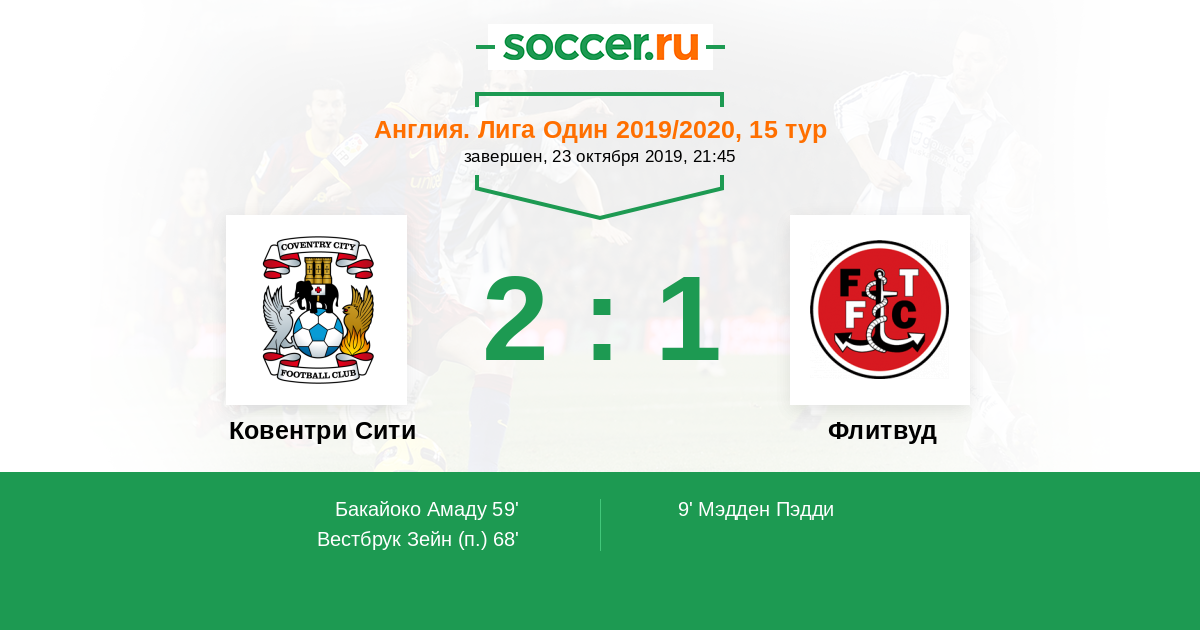 | Ковентри Сити | Флитвуд | |