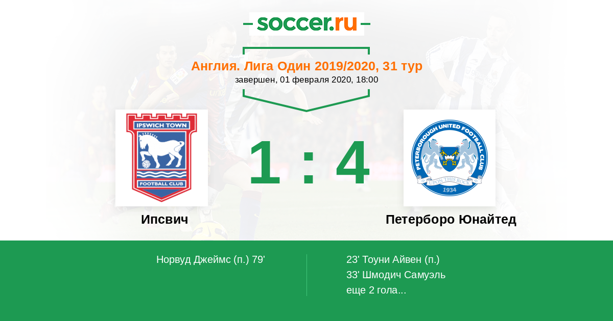 | Ипсвич | Петерборо Юнайтед | |
