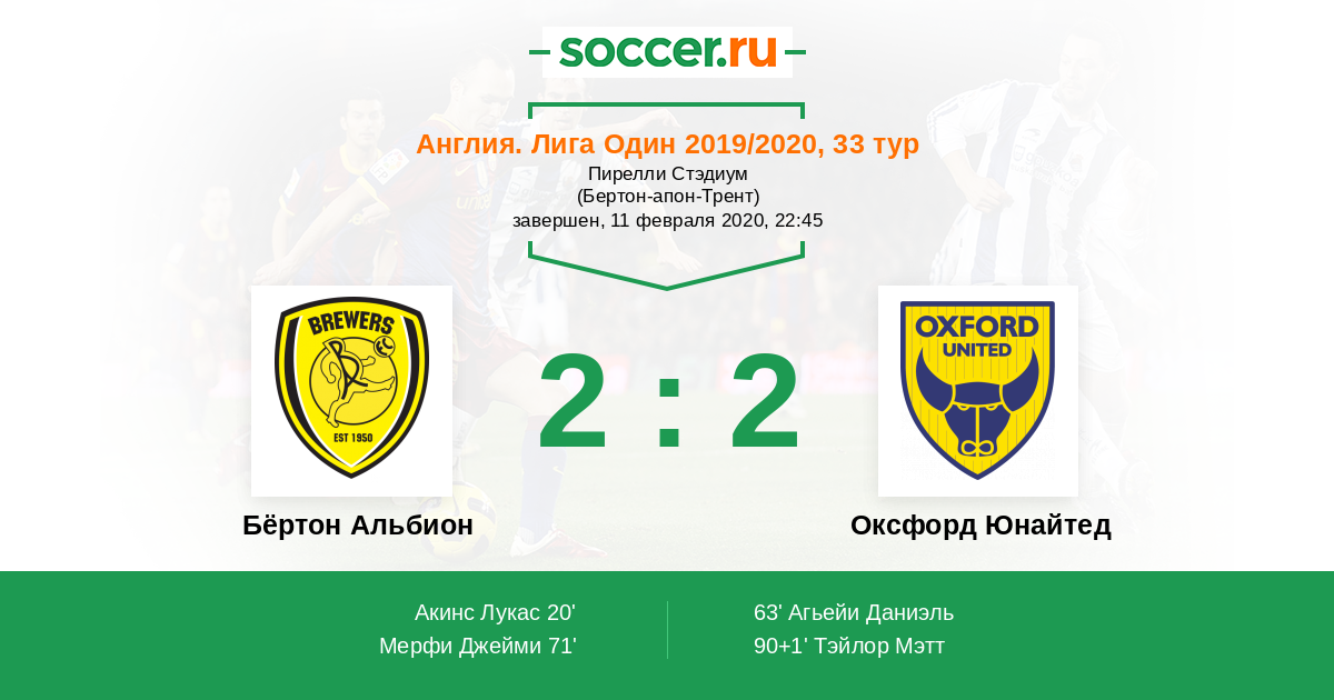 Оксфорд Юнайтед 2:1 Бёртон Альбион