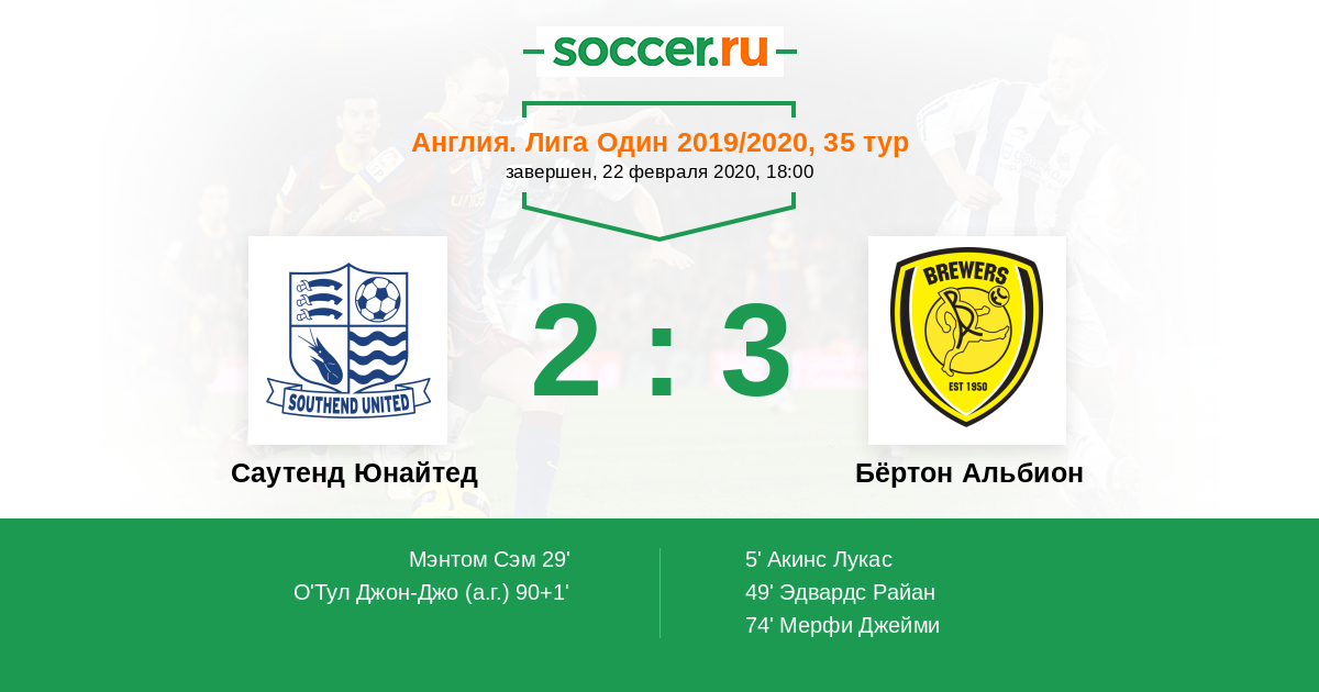 | Саутенд Юнайтед | Бёртон Альбион | |