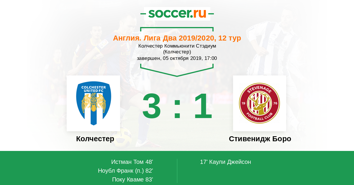 | Колчестер | Стивенидж Боро | |