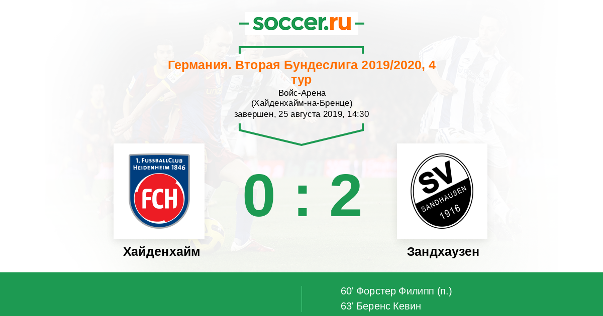 | Хайденхайм | 46:31 | 26:13 | 20:18 |