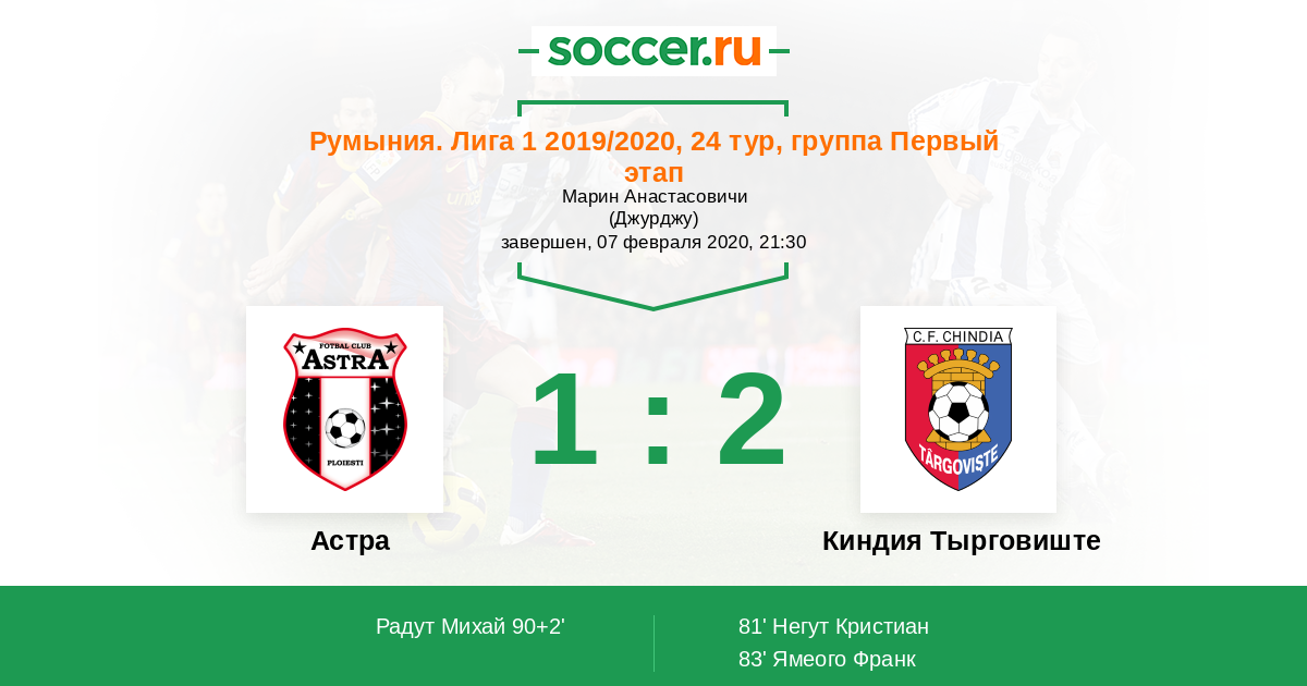 | Астра | Киндия Тырговиште | |