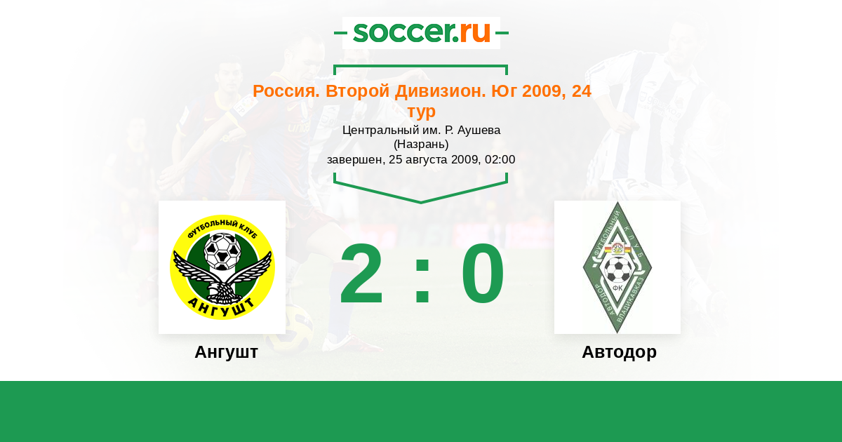| Ангушт | 2:4 | 0:0 | 2:4 |