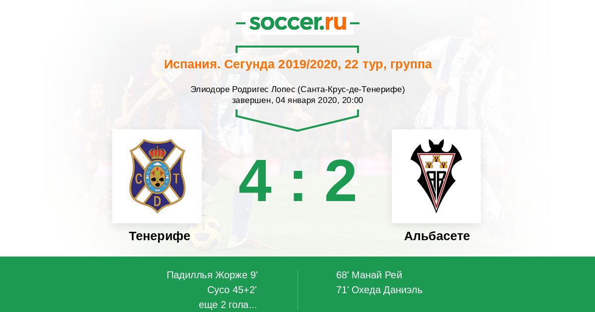 | Альбасете | 43:54 | 25:27 | 18:27 |