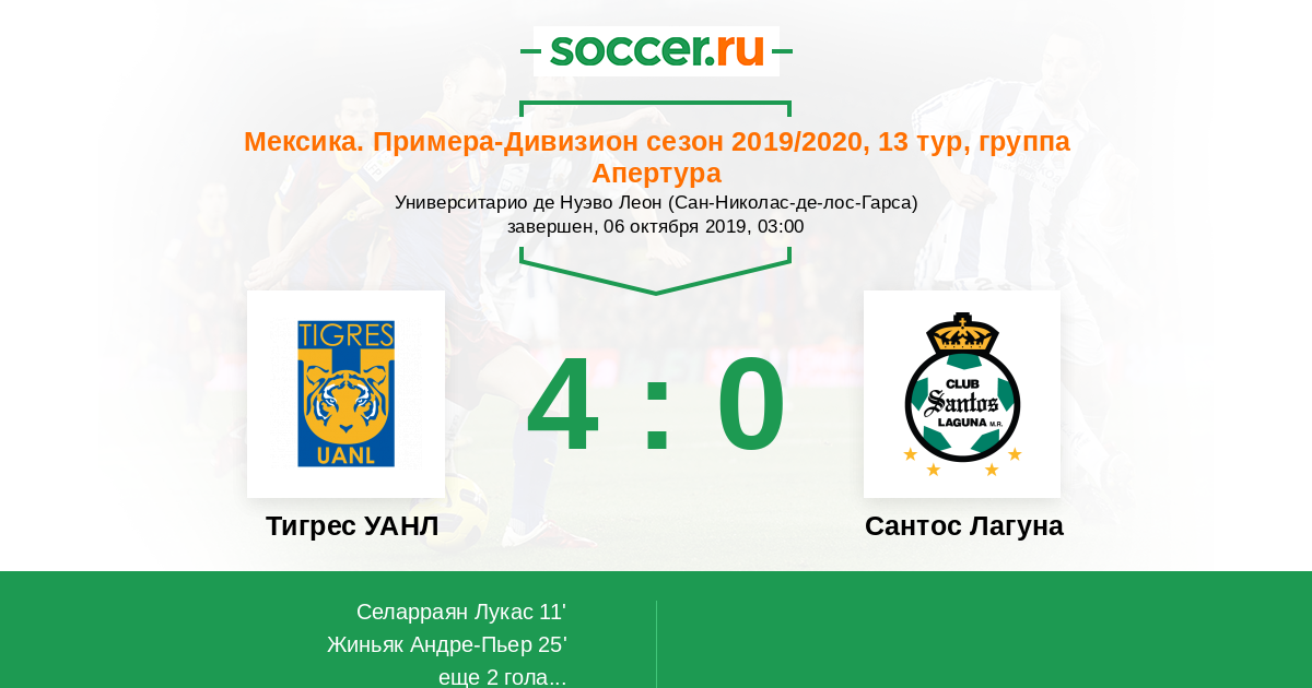 | Тигрес УАНЛ | Сантос Лагуна | |