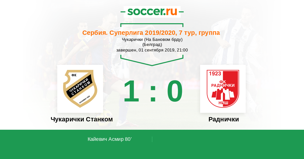 Последние 5 игр дома Чукарички Станком