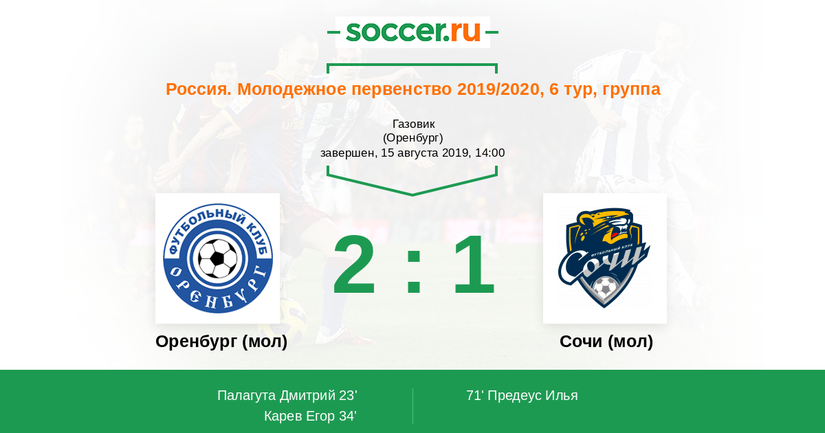 | Оренбург (мол) | Сочи (мол) | |