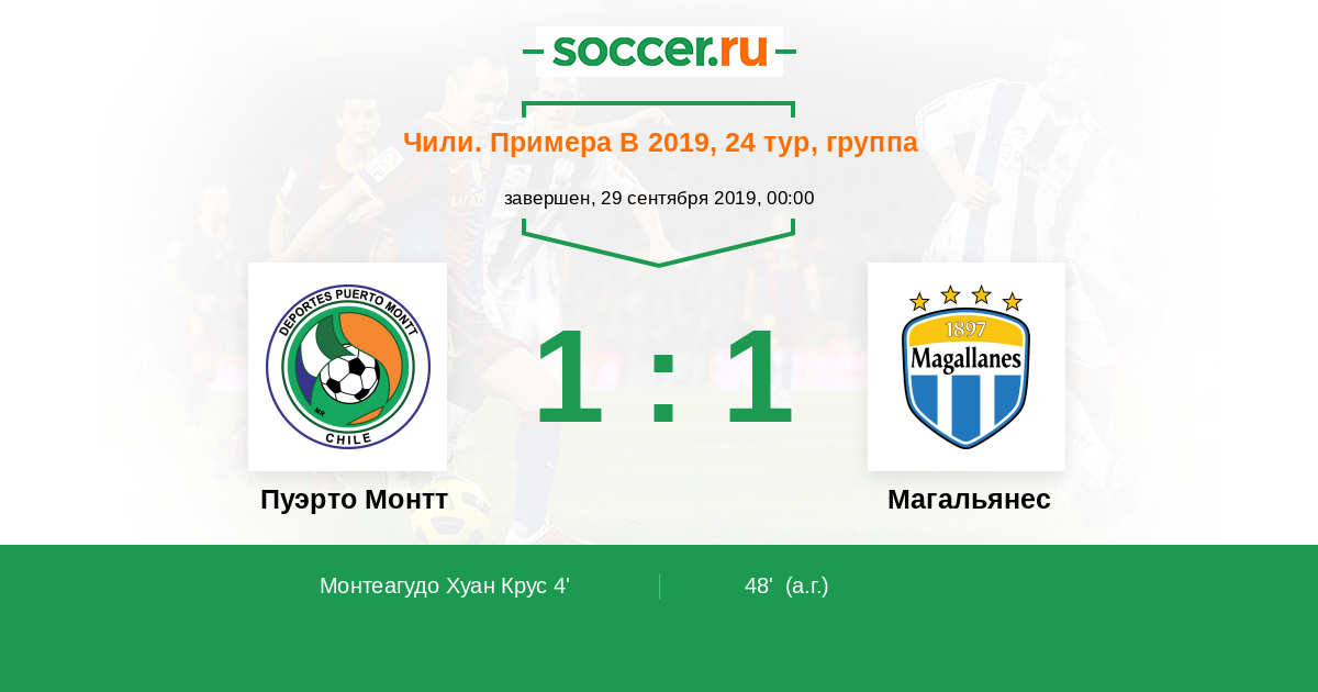 | Чили. Примера В | 18 | 6 | 4 | 8 |