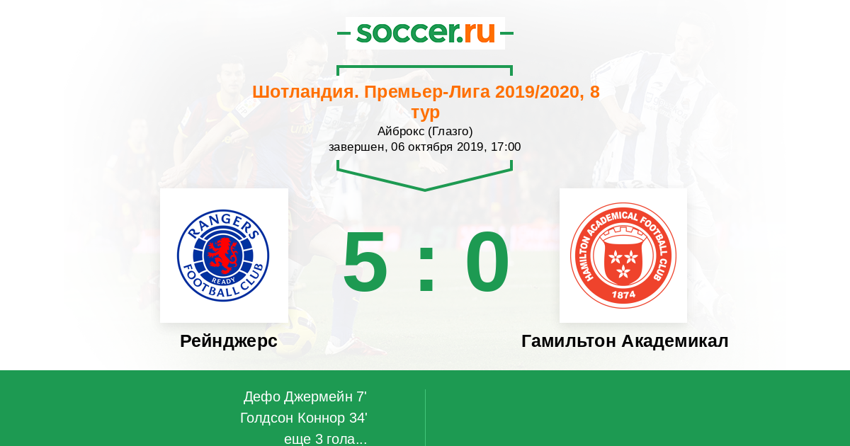 | Рейнджерс | Гамильтон Академикал | |