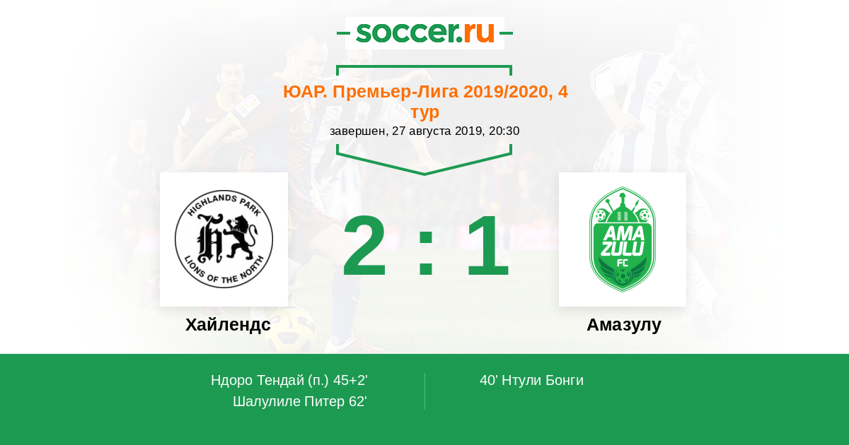 | Амазулу | 3:2 | 1:1 | 2:1 |
