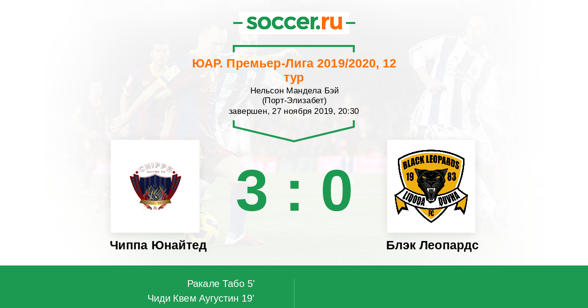 | Чиппа Юнайтед | Блэк Леопардс | |