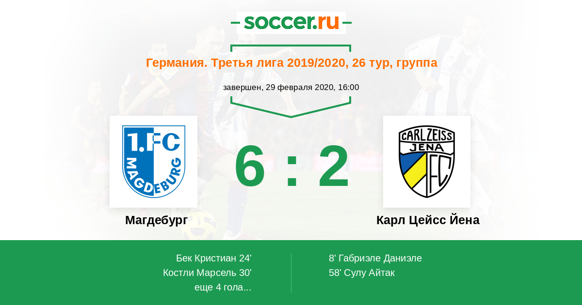 | Магдебург | Карл Цейсс Йена | |