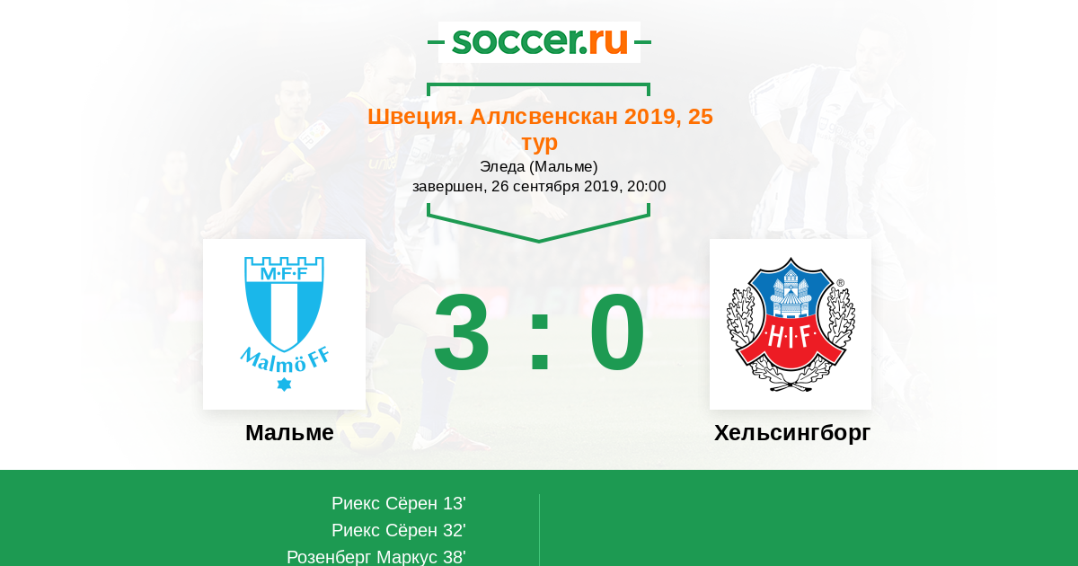 | Мальме | 72:53 | 39:27 | 33:26 |