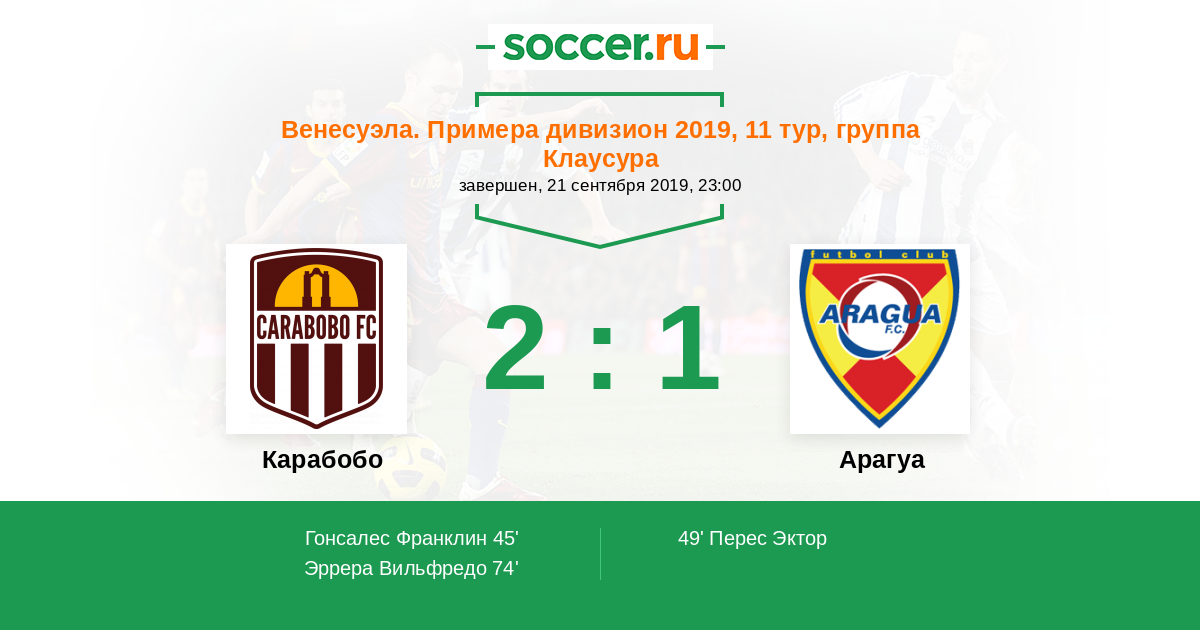 | Карабобо | 51:33 | 36:15 | 15:18 |