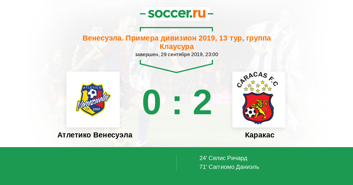 | Атлетико Венесуэла | 12:26 | 2:12 | 10:14 |