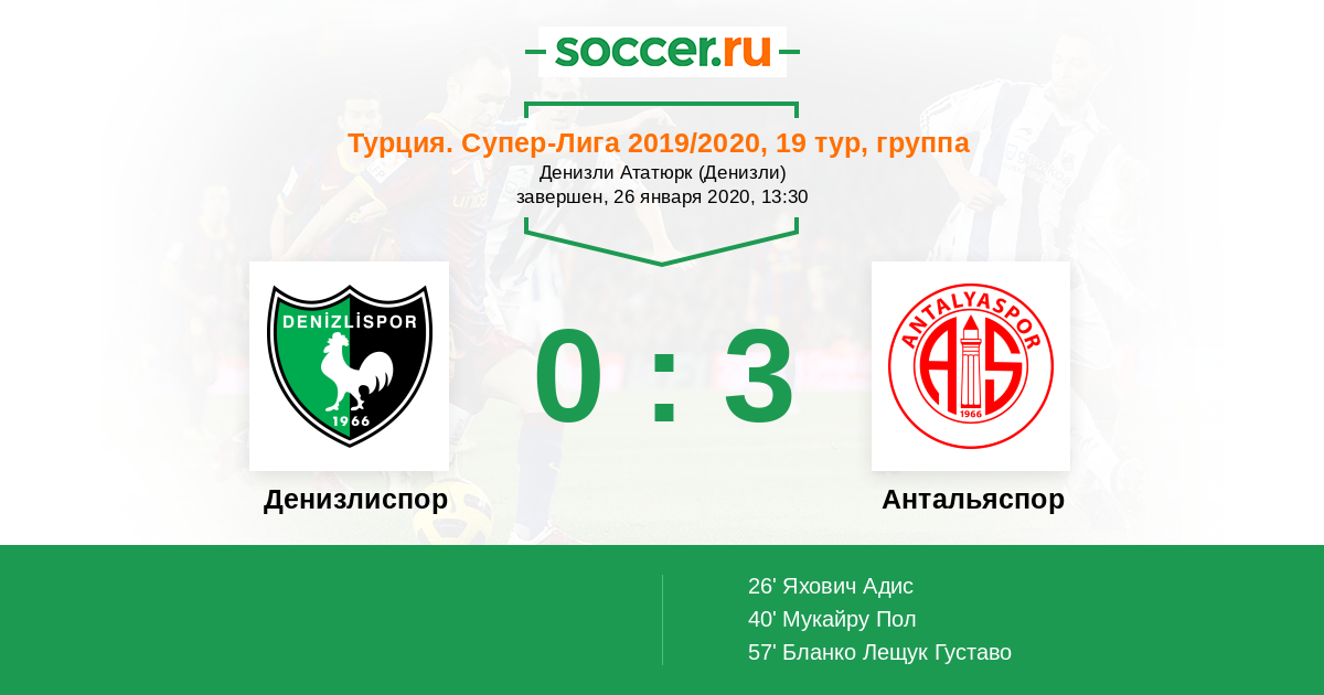 | Антальяспор | 38:30 | 20:10 | 18:20 |