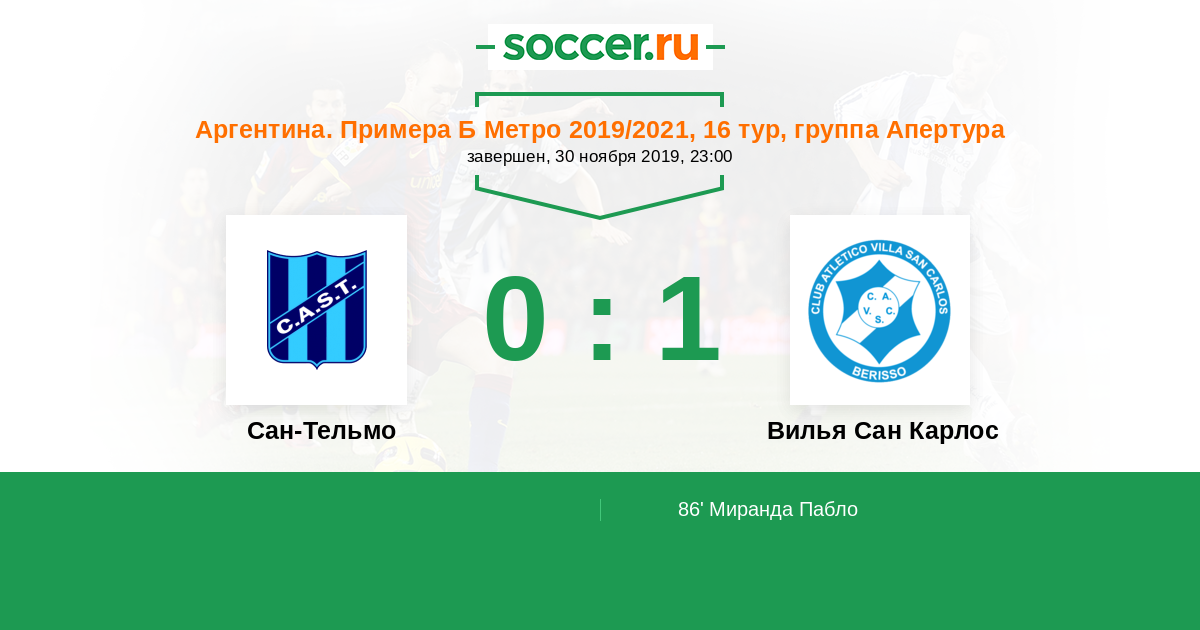| Аргентина. Примера Б Метро | 14 | 5 | 5 | 4 |