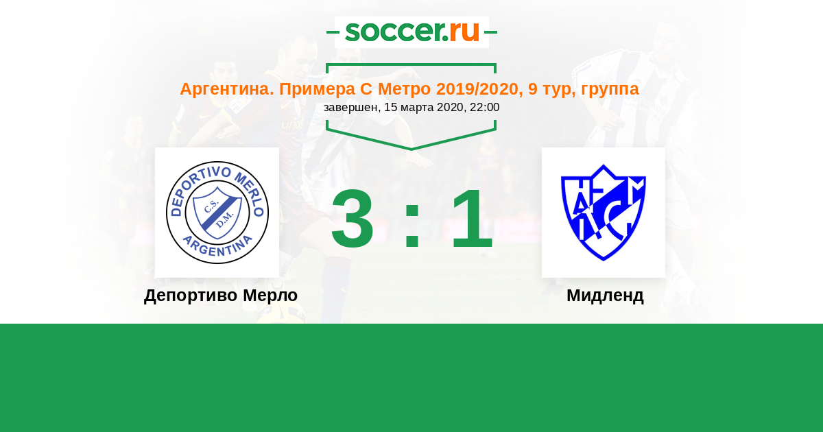 | Аргентина. Примера С Метро | 3 | 1 | 0 | 2 |