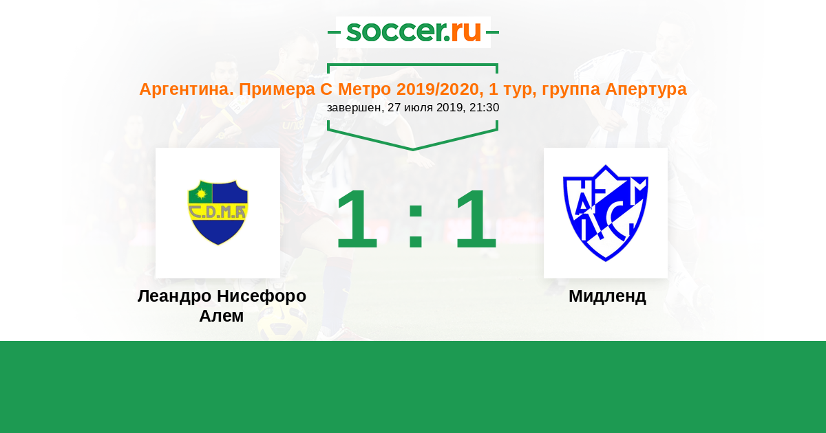 | Аргентина. Примера Д | 2 | 1 | 0 | 1 |