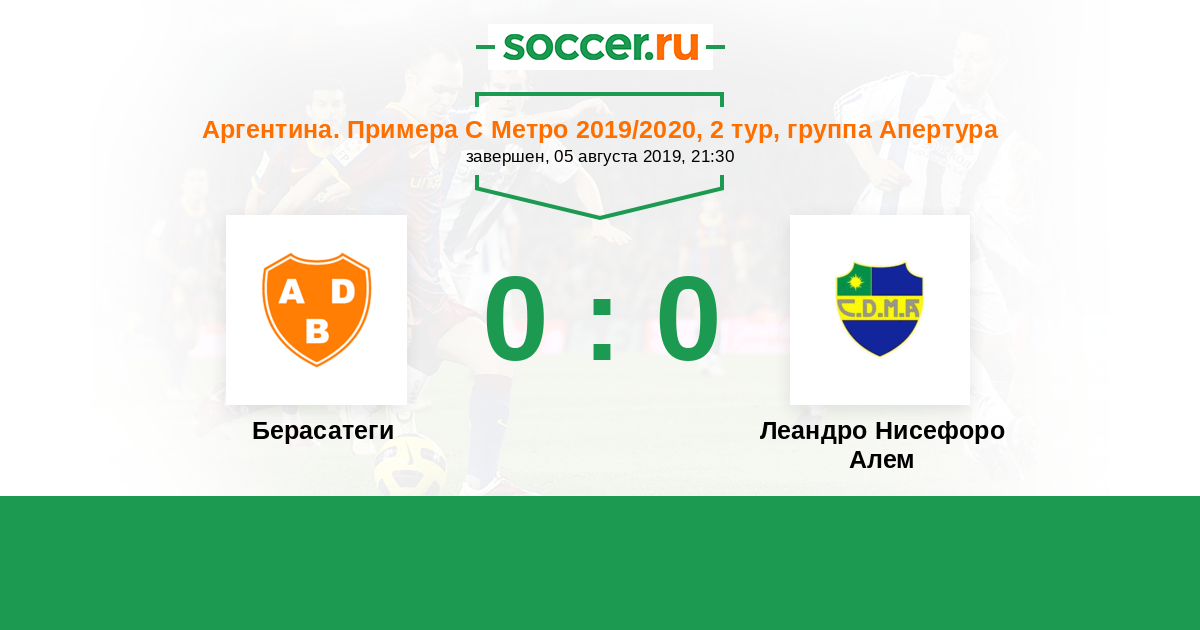 | Аргентина. Примера С Метро | 26 | 12 | 9 | 5 |